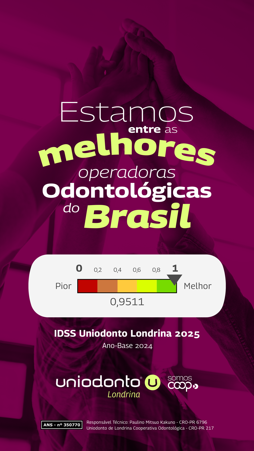 Mais do que números, essa conquista representa a força de um trabalho cooperativo e unido entre diretoria, colaboradores e cooperados, que, juntos, transformam o cuidado em atitude diária e garantem excelência no atendimento em saúde bucal para Londrina e toda a região.